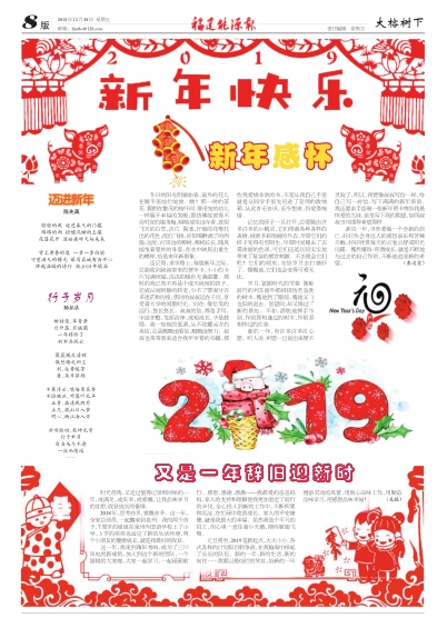元旦將至,2019是新起點,大大小小、各式各樣的計劃似百舸爭流,在我腦海中排起了長長的隊伍。新的一年,新的生活,新的向往……我要以最燦爛的笑容,給新的一年增添靈動的風景,用真心品味工作,用勤奮品味學習,用感恩品味幸福!(吳敏)