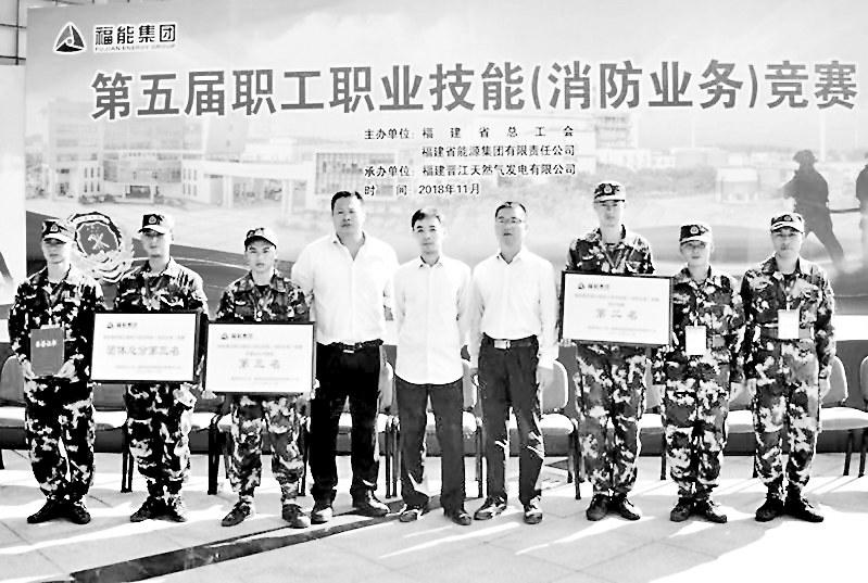 參賽團隊合影參賽團隊合影 福能集團第五屆職工職業(yè)技能(消防業(yè)務)競賽經(jīng)過3天的激烈角逐,圓滿落下帷幕。共有12支隊伍,90多名隊員參加了消防理論、3000米跑、引體向上、醫(yī)療急救、原地著裝、兩帶一槍、軍事化隊列等項目競賽。今年的競賽中令人驚喜的是凌空殺出一匹“黑馬”——晉南熱電兼職消防隊。