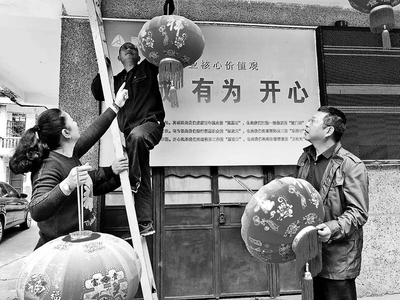 “貼春聯(lián)、掛彩旗,大紅燈籠高高掛”,臨近春節(jié),福建煤電公司所屬各單位紛紛以簡樸、熱烈的形式喜迎2019新春佳節(jié)的到來。圖為供電公司職工在辦公樓掛燈籠的場(chǎng)景。(林秀龍張建文攝)