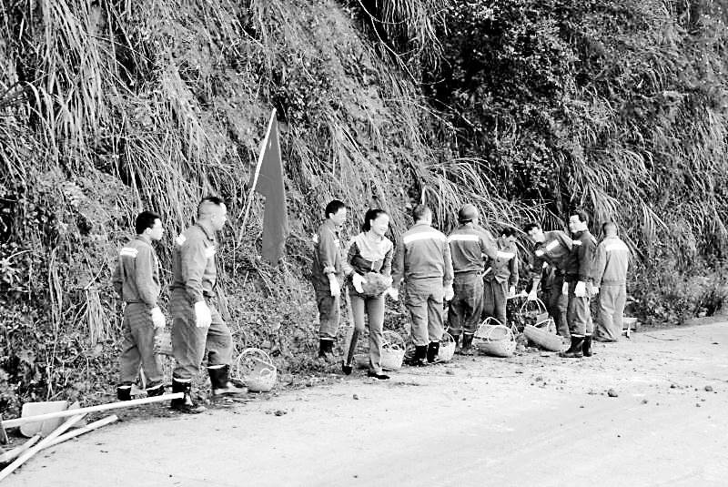 3月4日,永安煤業(yè)蘇橋煤礦全體黨員及機關工作人員到井口開展“黨建提升,服務礦井”主題黨日活動。圖為黨員們搶在雨天來臨之前清理道路。(陳君賢 攝影報道)