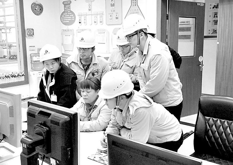 游友榮向見習(xí)人員講解化學(xué)汽水系統(tǒng)。 在晉江氣電公司,有這樣一個生產(chǎn)班組格外引人注目,那就是由絕大多數(shù)女工組成的化學(xué)班組。提起她們的帶頭人游友榮,許多男工都會豎起大拇指。她既有女性耐心細致如水一般的品質(zhì),又不缺男性雷厲風(fēng)行“鋼鐵般”的風(fēng)格,以勤勉務(wù)實的態(tài)度和爭先創(chuàng)優(yōu)的拼勁帶領(lǐng)化學(xué)班組平穩(wěn)運行。