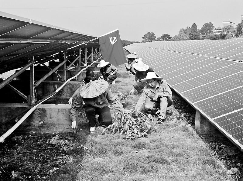4月10日,永安煤業(yè)公司上京供電所黨支部開展“爭當(dāng)五星耀黨徽"主題黨日活動。圖為該所黨支部黨員在永京光伏發(fā)電站進(jìn)行拔雜草義務(wù)勞動。(汪斌攝影報(bào)道)