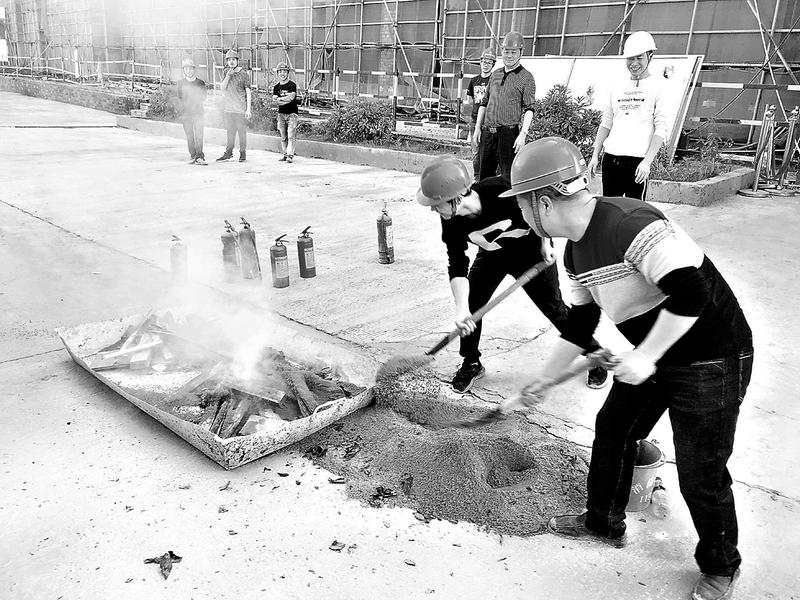 為提高面對(duì)應(yīng)急突發(fā)事件的處置能力,切實(shí)做好項(xiàng)目施工現(xiàn)場(chǎng)的消防安全管理工作,聯(lián)美公司積極組織各項(xiàng)目工地開(kāi)展消防安全演練活動(dòng)。圖為4月18日,龍巖“美倫·東錦緣””四期項(xiàng)目演練現(xiàn)場(chǎng)。(翁輝宏 潘建平 攝影報(bào)道)