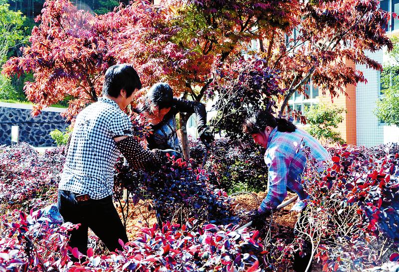 根據(jù)集團(tuán)公司提出的“2020年底擬保留的生產(chǎn)礦井要抓好綠色礦山建設(shè)”的要求,永安煤業(yè)公司池坪蘆坑煤礦重點(diǎn)抓好綠化、硬化和矸石山的處理。圖為4月26日,該礦職工在工業(yè)廣場(chǎng)補(bǔ)種樹木和清除雜草。 (陳思洲 攝)