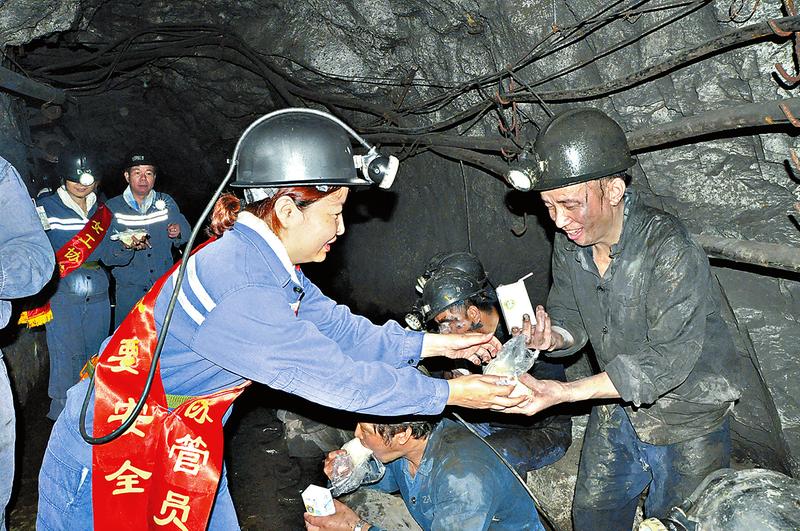 5月3日,永安煤業(yè)公司豐海煤礦女工委組織女工家屬協(xié)管員開展井下“送溫暖囑安全”活動,用實(shí)際行動溫暖職工,筑牢安全防線。圖為女工將包子、牛奶等食品送到礦工手上,并囑咐他們“千忙萬忙,安全不忘”。