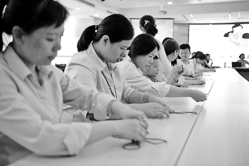 55月12日是母親節(jié),,鴻山熱電公司在77樓大會議室開展女職工中國結(jié)編織DIY活動,,活動吸引了公司眾多女職工以及職工子女參加。