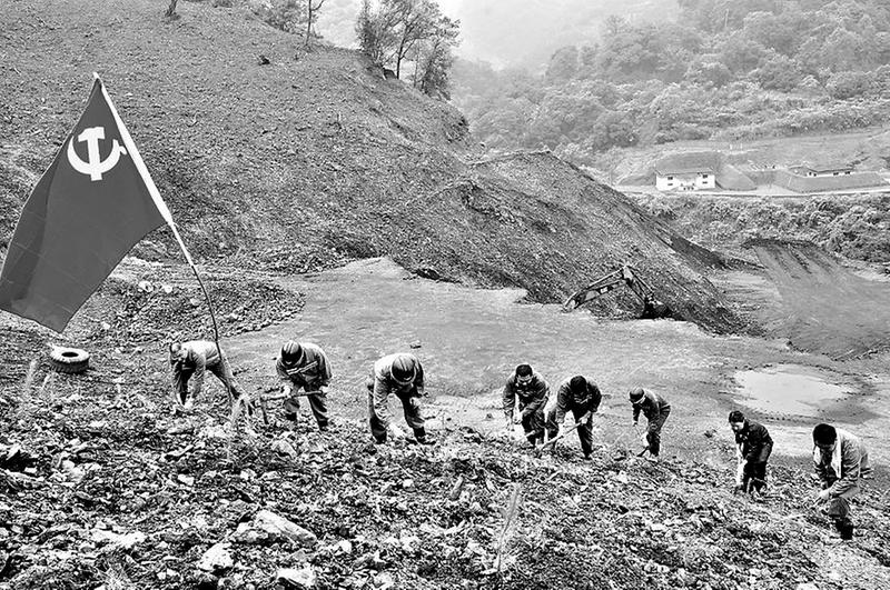 為加快推進(jìn)礦井的生態(tài)恢復(fù)治理工作,5月9日,永安煤業(yè)公司豐海煤礦黨總支組織黨員干部到斑竹坑+228m排矸場開展義務(wù)勞動。。圖為黨員干部在種植馬尾松。(翁柳云翁柳云攝影報道攝影報道)