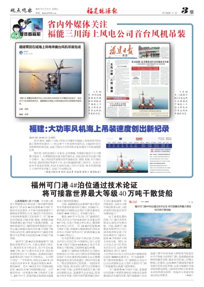省內(nèi)外媒體關(guān)注福能三川海上風(fēng)電公司首臺風(fēng)機(jī)吊裝