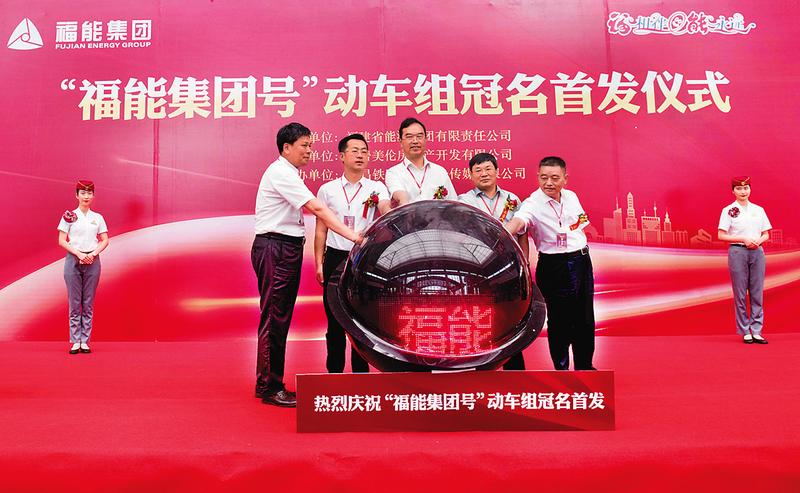 6月6日上午,“福能集團號”動車組冠名首發儀式在福州火車南站舉行。此次福能集團與南昌鐵路局強強聯手,搭建了品牌建設與媒介傳播的新平臺。福能集團將借助高鐵動車組品牌營銷方面的豐富經驗,利用高鐵大客流的特點,傳播福能品牌和理念。圖為福能集團黨委副書記、總經理謝榮興等領導啟動“福能集團號”冠名球。(康維方 郭銀平 攝影報道)