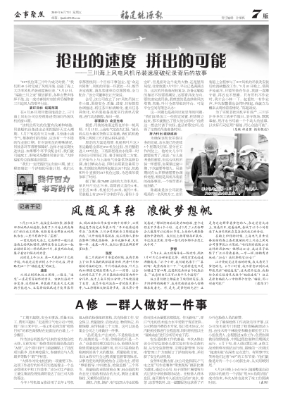 此時(shí)是上午10點(diǎn),第一片風(fēng)機(jī)葉片已經(jīng)升起,而我還沒意識(shí)到,6個(gè)小時(shí)之后,將親眼見證一個(gè)“福能速度”的誕生。