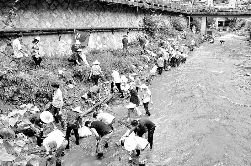 7月2日,福能南紡新材料有限公司黨委結合“不忘初心、牢記使命”主題教育,組織基層黨員、志愿者到南平安豐溪開展“七一黨員在行動”清理河道活動。(沈建梅 李志華 攝影報道)