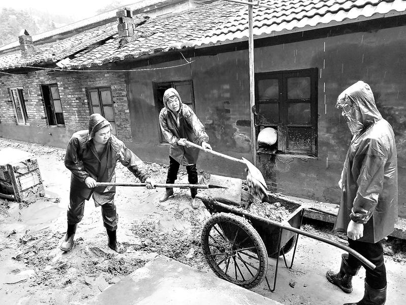 該公司黨員紛紛投入抗災(zāi)清淤自救中。(邱家治 攝)