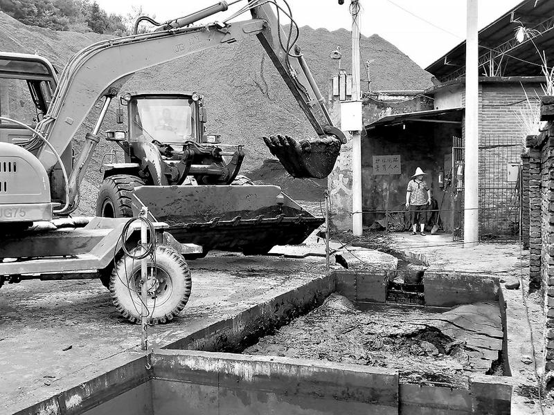 由于近期暴雨不斷,漳平煤業(yè)公司發(fā)運站煤場沉淀池內(nèi)煤泥淤積較多,存在環(huán)保隱患。7月15日中午,發(fā)運站組織人員開展沉淀池清淤治理活動,利用鏟車、小型挖機(jī)將沉淀池內(nèi)煤泥清理回收。(彭元亮 攝影報道)