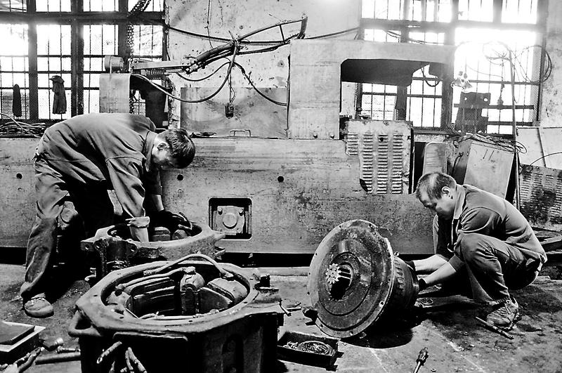 7月24日,福建煤電公司龍?zhí)睹旱V兩個水平的電機車行駛中突然同時“趴窩”。該礦機電部門迅速采取緊急應(yīng)對措施,并將損壞電機車調(diào)出地面進(jìn)行搶修。圖為搶修過程中,該礦機修人員為損壞電機更換軸承配件。(王峰攝影報道)
