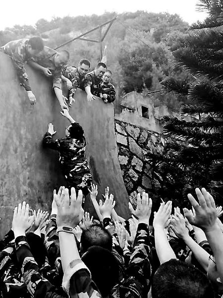 翻越4.2米高墻,這是集團(tuán)第十二期工商班團(tuán)隊室外拓展的最后一個訓(xùn)練科目,要求團(tuán)隊中的每個人只能借助其他同學(xué)的身體,在規(guī)定的時間內(nèi)全部學(xué)員實現(xiàn)成功攀越……