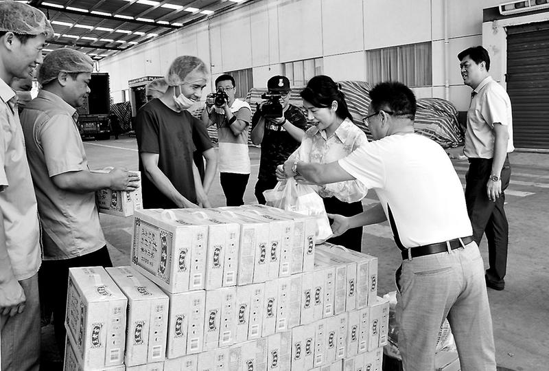▲7月23日上午,南平市委常委、統(tǒng)戰(zhàn)部部長、市總工會主席莊莉一行到南紡新材料公司水刺廠一車間為“戰(zhàn)高溫、奪高產”的一線職工送上防暑降溫物品及涼茶。