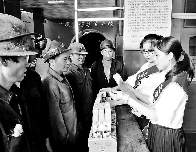 7月24日,福建煤電公司龍?zhí)兜V女工委開展“送清涼、保安全”活動,為上下班工友們送去冬瓜茶、西瓜等防暑降溫食品,并提醒他們把牢“安全關(guān)”。(林莉攝)