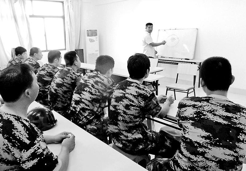 (林慰君攝影報道)圖為林森輝在為安保部同事們上課。