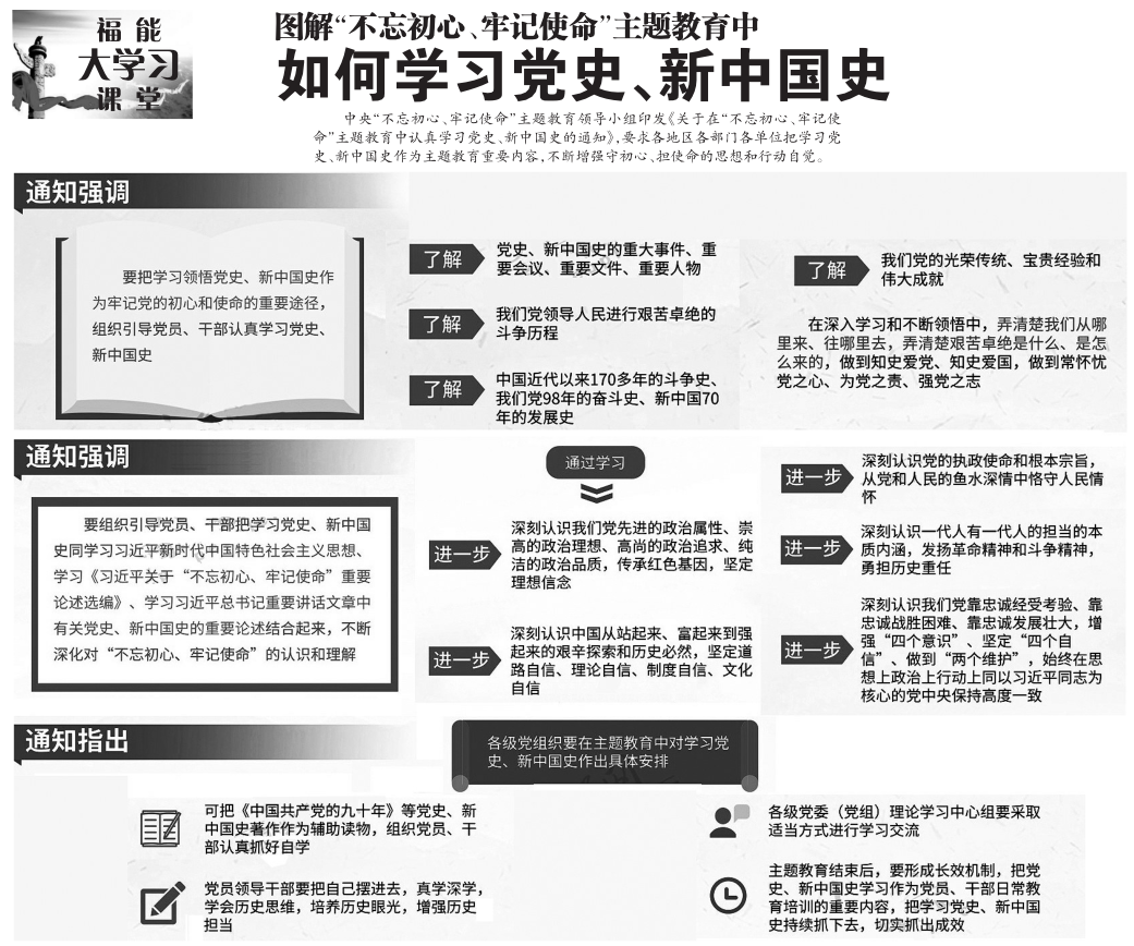 圖解“不忘教育、牢記使命”主題教育中如何學(xué)習(xí)黨史、新中國使