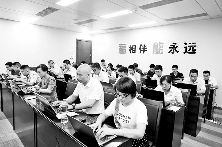 圖為主題教育知識競賽答題現(xiàn)場。 本報訊為推進“不忘初心、牢記使命”主題教育深入開展,推進習近平新時代中國特色社會主義思想入腦入心,月3日下午,集團公司在本部35層會議室,分兩場舉辦了“不忘初心、牢記使命”主題教育應知應會100問知識競賽,來自集團本部和權(quán)屬單位的黨員代表共85人參加競賽。
