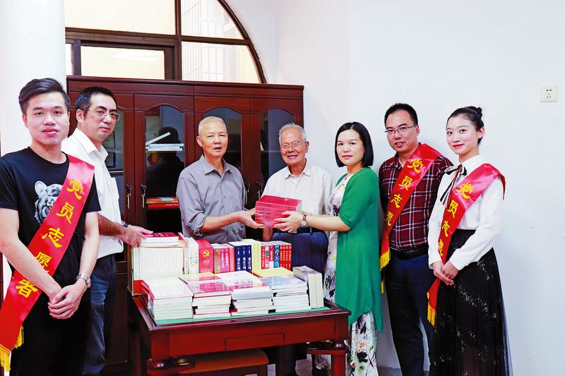 10月17日下午,省配售電公司黨支部組織黨員志愿者走進(jìn)集團(tuán)龍腰退休基地,向退休老黨員們贈送了黨旗、國旗及《習(xí)近平在正定》等書籍80多冊。(吳斌亮 王東波 攝)