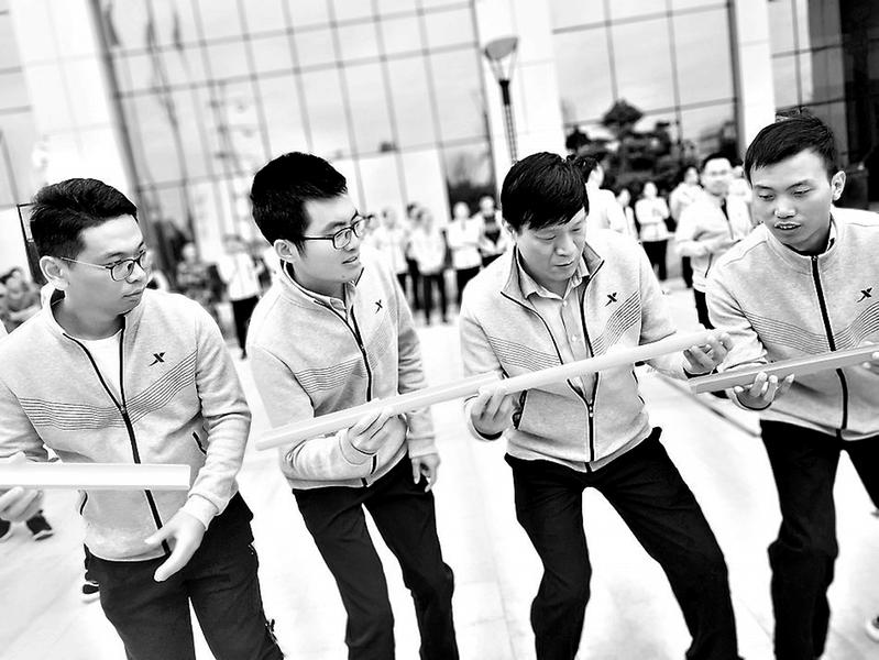 10月29日,新能源公司在后勤保障基地大樓舉辦了第一屆職工運動會。圖為職工運動員齊心協力完成團體項目“能源傳遞能源傳遞”。