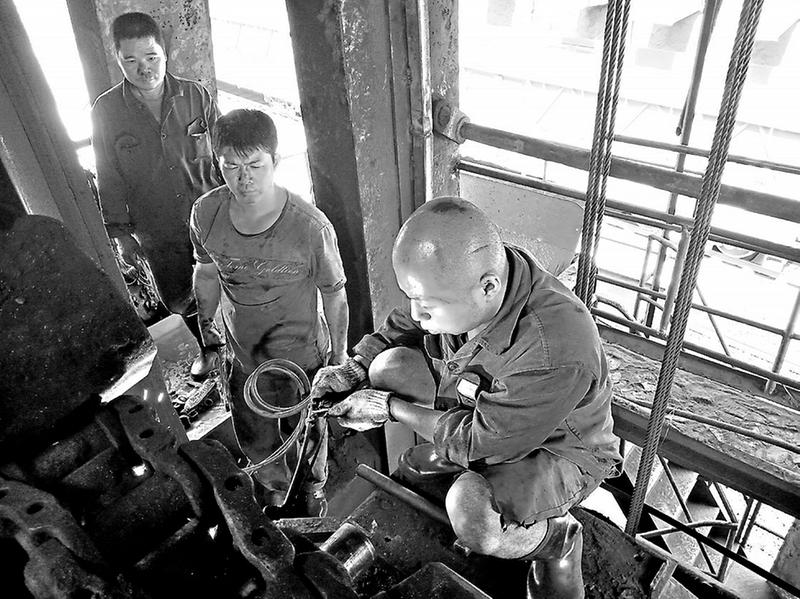 因連續(xù)兩個月以來的大生產(chǎn),福建煤電公司雁石發(fā)運站皮帶機、卸煤機、破碎機等都受到不同程度的“勞損”。為確保安全生產(chǎn),該站多措并舉做好生產(chǎn)設(shè)備檢修工作。圖為10月28日凌晨5點多,該站“搶修突擊隊”正在搶修卸煤機。(朱德月鐘建興攝影報道)