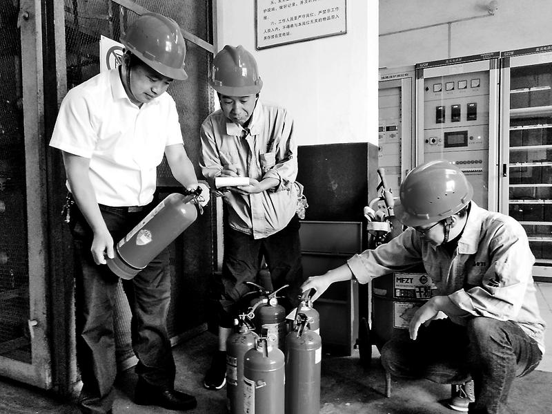 日前,福建煤電供電公司開展秋冬地面消防安全大檢查,對各變電站、修試車間、生活區(qū)進行全面“體檢”,消除不良隱患,防范火災發(fā)生。圖為11月1日,檢查組在翠屏山變電站檢查滅火器具的配備和完好情況。(張建文張萍攝影報道)