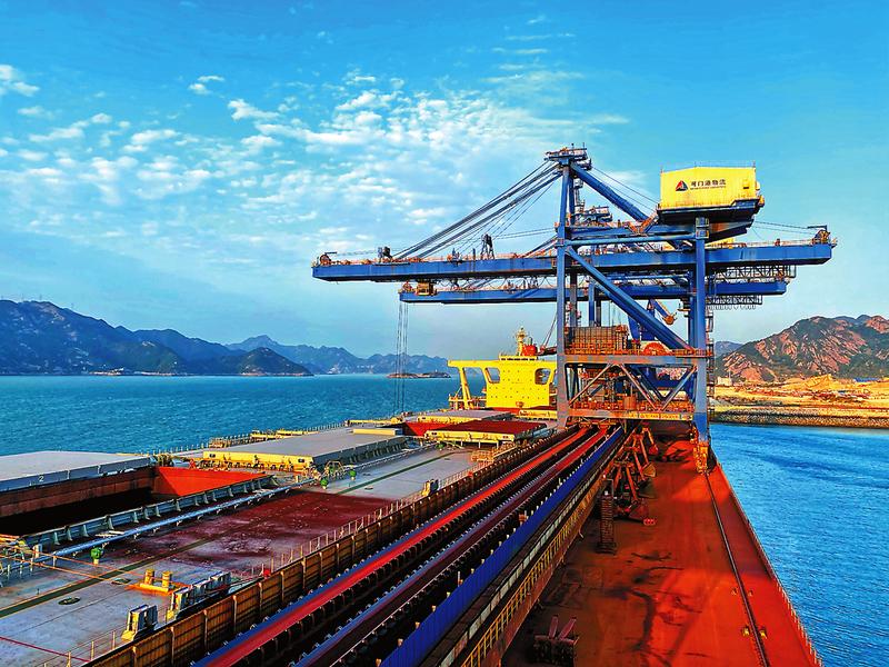 技術管理,不斷提高服務品質,沖刺年終目標。圖為可門港物流公司接卸淡水河谷公司混礦原料母船。(張旸攝)