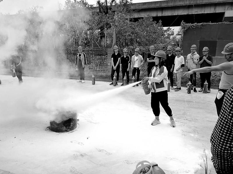 11月11日,建材控股福州混凝土公司組織開展消防安全演練活動。活動中,安全員組織員工現場模擬火災干粉滅火消防演練,加強實踐操作本領,提高員工應對火情的自救能力。圖為公司員工正在學習使用滅火器。(李炳有攝影報道)