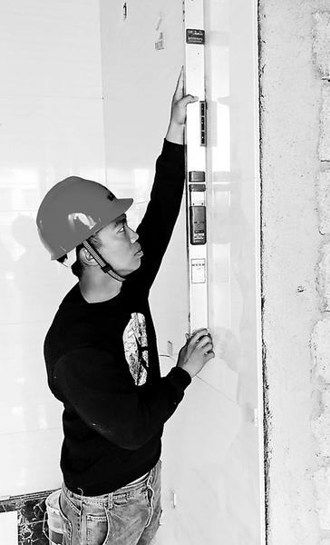 (黃梅仙攝影報(bào)道)圖為黃裕安在檢查施工質(zhì)量。