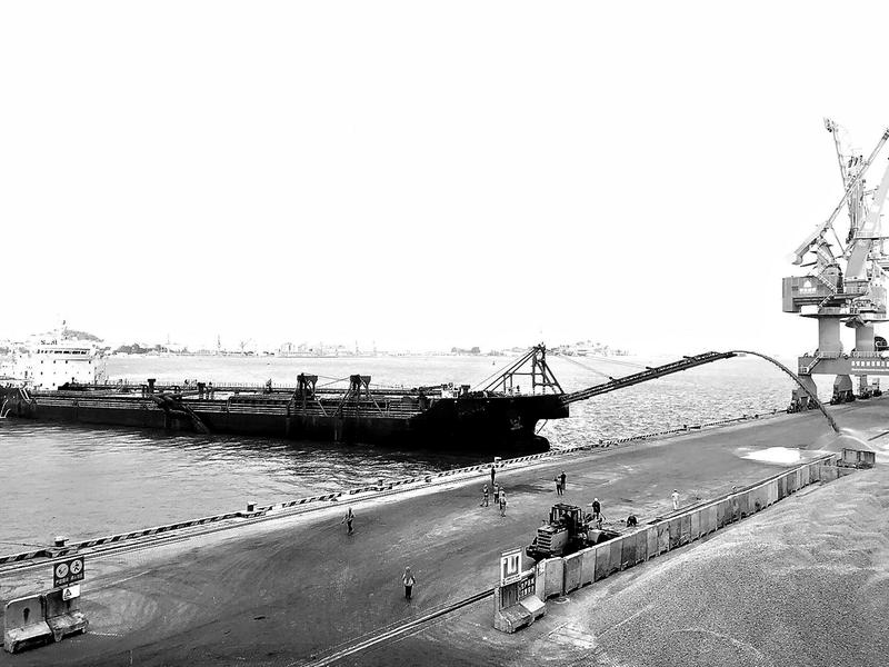 11月21日下午5點(diǎn),肖厝港物流公司接卸的第一艘自卸砂船“明盈16”號(hào)停靠在該公司4#泊位,并于6點(diǎn)40分安全離港,前后僅用1小時(shí)30分完成接卸,每小時(shí)作業(yè)效率超6000噸。圖為“明盈16”號(hào)接卸現(xiàn)場(chǎng)。