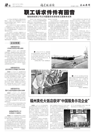 福州美倫大飯店獲評(píng)“中國(guó)服務(wù)示范企業(yè)”