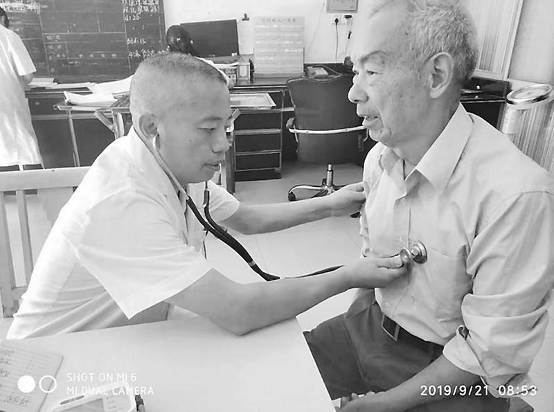 圖為李君松正在為老職工檢查身體。 福能(邵武)醫(yī)院院長李君松從醫(yī)30多年,擔任院長10多年來,堅持坐診,堅持查巡房,堅持走訪;他幾十年如一日,心系退休老職工、患者與醫(yī)院發(fā)展,在平凡崗位上踐行共產黨員的初心與使命。被大家譽為患者的救星、醫(yī)院的好當家。