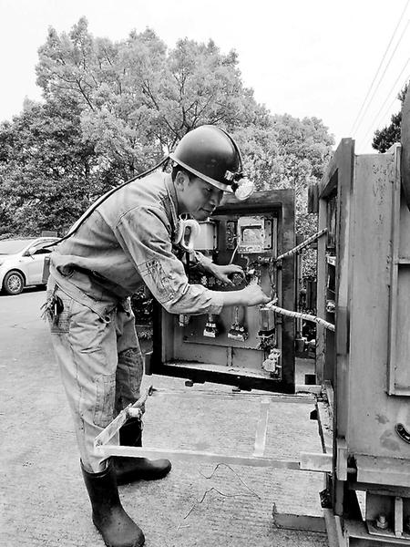 圖為黃冬明在檢修回收至地面的配電裝置。