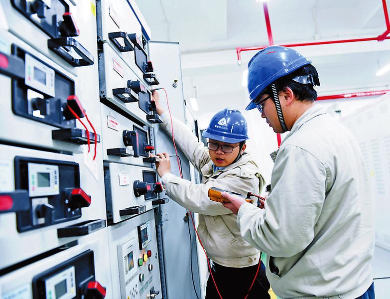 2020年1月1日,是福能鴻山熱電公司#1機(jī)組檢修進(jìn)行的第16天。縱然元旦佳節(jié),檢修現(xiàn)場(chǎng)依然熱火朝天。圖為該公司電氣點(diǎn)檢員正在對(duì)380V開關(guān)柜二次回路進(jìn)行檢查工作。(劉寒婷 攝影報(bào)道)