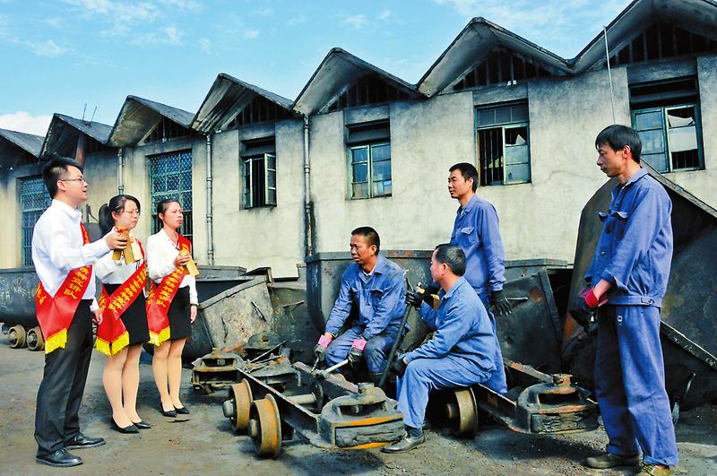 1月7日,福建煤電公司龍?zhí)睹旱V黨員將黨的十九屆四中全會精神編寫成快板說唱詞,深入到該礦井口、機修車間、辦公樓、職工宿舍進行宣講。(陳思忠 攝影報道)
