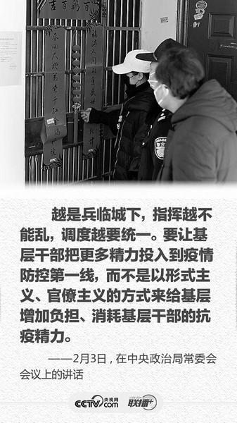 1月7日習近平總書記主持召開中央政治局常委會會議,對新冠肺炎疫情防控工作提出要求;1月20日就疫情防控作出重要指示,強調“要把人民群眾生命安全和身體健康放在第一位”;月28日會見世衛組織總干事,指出“疫情是魔鬼,我們不能讓魔鬼藏匿”;月10日在北京調研指導疫情防控工作,要求以更堅定的信心、更頑強的意志、更果斷的措施,堅決打贏疫情防控的人民戰爭、總體戰、阻擊戰……