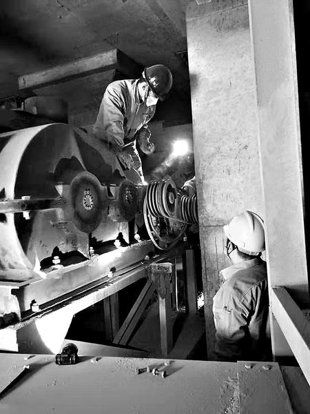 圖為電修人員正在檢修4#拉鏈機電機。 在全民聯動抗擊新冠肺炎疫情的關鍵時間節點,為期7天的福建水泥公司煉石水泥廠2#包裝機系統設備大修工作于2月11日上午8點全面開工,疫情防控與設備大修“兩手抓”的“戰斗”拉開了序幕。