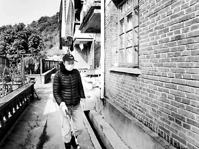 圖為陳玉欽正在生活區(qū)進行消毒作業(yè)。 春節(jié)臨近,大部分職工急于回家過年,但因工作需要,某些職工仍需留守崗位,永安煤業(yè)公司西洋篩選廠的門衛(wèi)及衛(wèi)生工陳玉欽大姐就是其中一位春節(jié)期間留守崗位的同志。