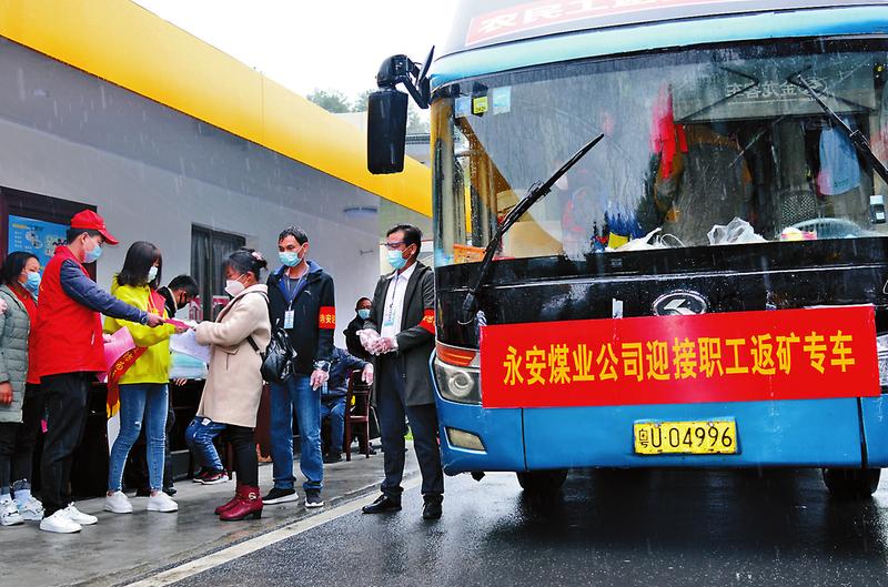3月4日上午,永安煤業(yè)公司迎接職工返礦專車抵達(dá)仙亭煤礦。車上坐著26名來自貴州省丹寨縣、三都縣兩地的返礦務(wù)工人員,他們行駛21小時(shí)、1200余公里,平安返礦。