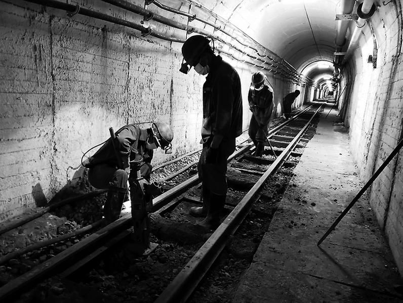 為提升軌道運行質(zhì)量,漳平煤業(yè)箭竹坪煤礦組織職工按照煤礦安全標準化要求,加班加點對+283主平硐、集運巷等軌道線路進行調(diào)整。圖為2月27日,該礦釘?shù)腊嗳藛T正在+283主平硐調(diào)整軌道。(賴雪玲陳騰達攝影報道)