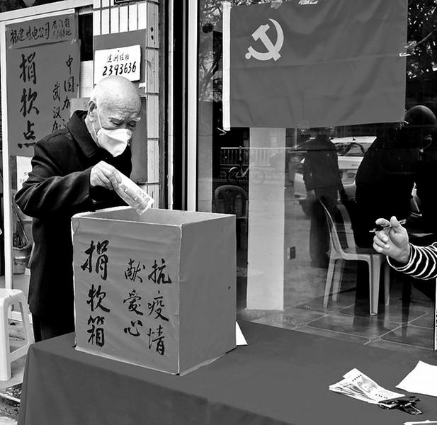 圖為后門前退休基地離退休黨員陳錫鵬到轄區(qū)參與捐款。 3月1日上午,一場為抗擊疫情的愛心捐款在福建煤電公司后門前退休基地離退休黨員中溫情開展,個(gè)多小時(shí)共募集3080元。在共同抗“疫”、愛心接力的路上,又上演了一個(gè)暖心故事。