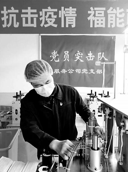 圖為王貴勝在調(diào)試維修設(shè)備圖為王貴勝在調(diào)試維修設(shè)備。。 來勢洶洶的新冠肺炎疫情,一夜之間讓口罩成了當(dāng)前最緊俏的物資。與時(shí)間賽跑,和疫情較量,南紡新材公司用48小時(shí)完成了一場“賽跑”,恢復(fù)了一條4年未開動(dòng)的口罩生產(chǎn)線,可日產(chǎn)1.8萬只普通防護(hù)口罩。與此同時(shí),在福能集團(tuán)的指導(dǎo)和部署下,南紡新材公司又緊鑼密鼓地籌建4條新口罩生產(chǎn)線,進(jìn)一步提升產(chǎn)能,為打贏疫情防控阻擊戰(zhàn)作出“國企貢獻(xiàn)”。