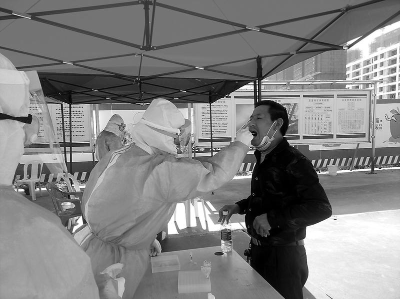 2月24日,聯(lián)美公司在福州灣D地塊項目部搭設(shè)臨時采樣點,聯(lián)系地方醫(yī)院對返閩工人分批進行咽拭子取樣,配合做好新冠肺炎核酸檢測工作。(杜贊堂攝影報道)