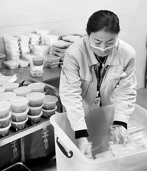 陳建英作為食堂管理人員,認(rèn)真執(zhí)行各項(xiàng)防控措施,帶領(lǐng)食堂工作人員每天上演著食品安全的“接力賽”:食堂消毒、食材進(jìn)貨核驗(yàn)、套餐菜單下發(fā)、網(wǎng)絡(luò)訂餐收集、制作餐點(diǎn)、菜品打包、碼放整齊、按時(shí)分區(qū)域送餐等各項(xiàng)“賽程”都井井有條逐一落實(shí)到位。