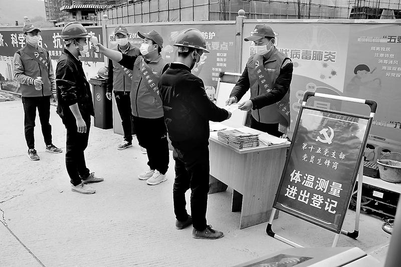 為切實做好新冠肺炎疫情防控工作,聯(lián)美公司第十五黨支部黨員先鋒隊通過在項目工地發(fā)放防疫宣傳手冊、設(shè)置體溫測試點、對出入人員進行消毒等方式,把好疫情防控第一道關(guān)。圖為3月6日,第十五黨支部組織黨員先鋒隊到項目工地開展體溫檢測和手冊發(fā)放活動。(連益峰 闕文亮 攝影報道)
