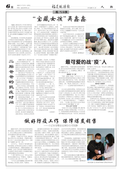 3月1日下午,張中亮的妻子順利生產(chǎn),本想著好好陪護(hù)、照顧一下妻子和孩子,但電話鈴聲不時(shí)響起,中亮,抗疫宣傳MV歌曲需補(bǔ)錄一段,能否再加緊修改一下?”“中亮,板塊網(wǎng)站建設(shè)需再探討一下,加快進(jìn)度。”……第二天,他一臉愧疚并不舍地與妻子說:“對(duì)不起,我得去加班了。”他迅速返回工作崗位,跟進(jìn)網(wǎng)站建設(shè)事宜、錄制宣傳作品、編輯推送公司微信公眾號(hào)等,連續(xù)忙碌了幾天。