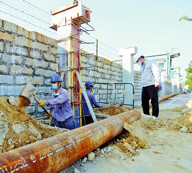 經(jīng)過前期精心準(zhǔn)備,福能鴻山熱電公司高新區(qū)供熱管道工程首條支線于近期開始動工,為進(jìn)一步加快該工程全線貫通投運(yùn)步伐奠定基礎(chǔ)。據(jù)悉,該管網(wǎng)建設(shè)工程總長度為14.15公里,主要采用架空與地埋相結(jié)合的敷設(shè)方式。圖為現(xiàn)場施工人員正在清理管道基坑。 (劉寒婷攝)