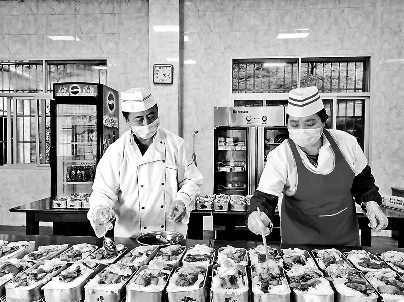 永安煤業(yè)公司仙亭煤礦在扎實(shí)做好新冠肺炎疫情防控工作的同時(shí),積極致力于改善職工班中餐伙食,加強(qiáng)營(yíng)養(yǎng)調(diào)配,不斷提高飯菜質(zhì)量。圖為4月11日,食堂炊事員正在分發(fā)班中餐。(薛文勇 攝影報(bào)道)